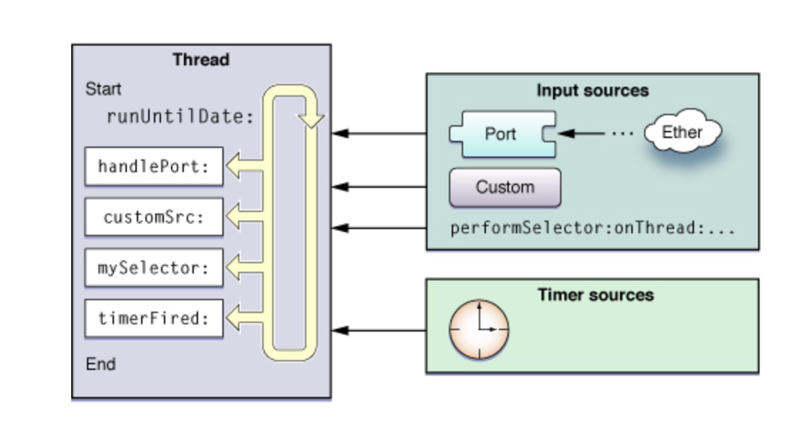 RunLoop란 소켓, 파일, 키보드 마우스 등의 입력 소스와 타이머를 처리하는 이벤트 처리 루프.